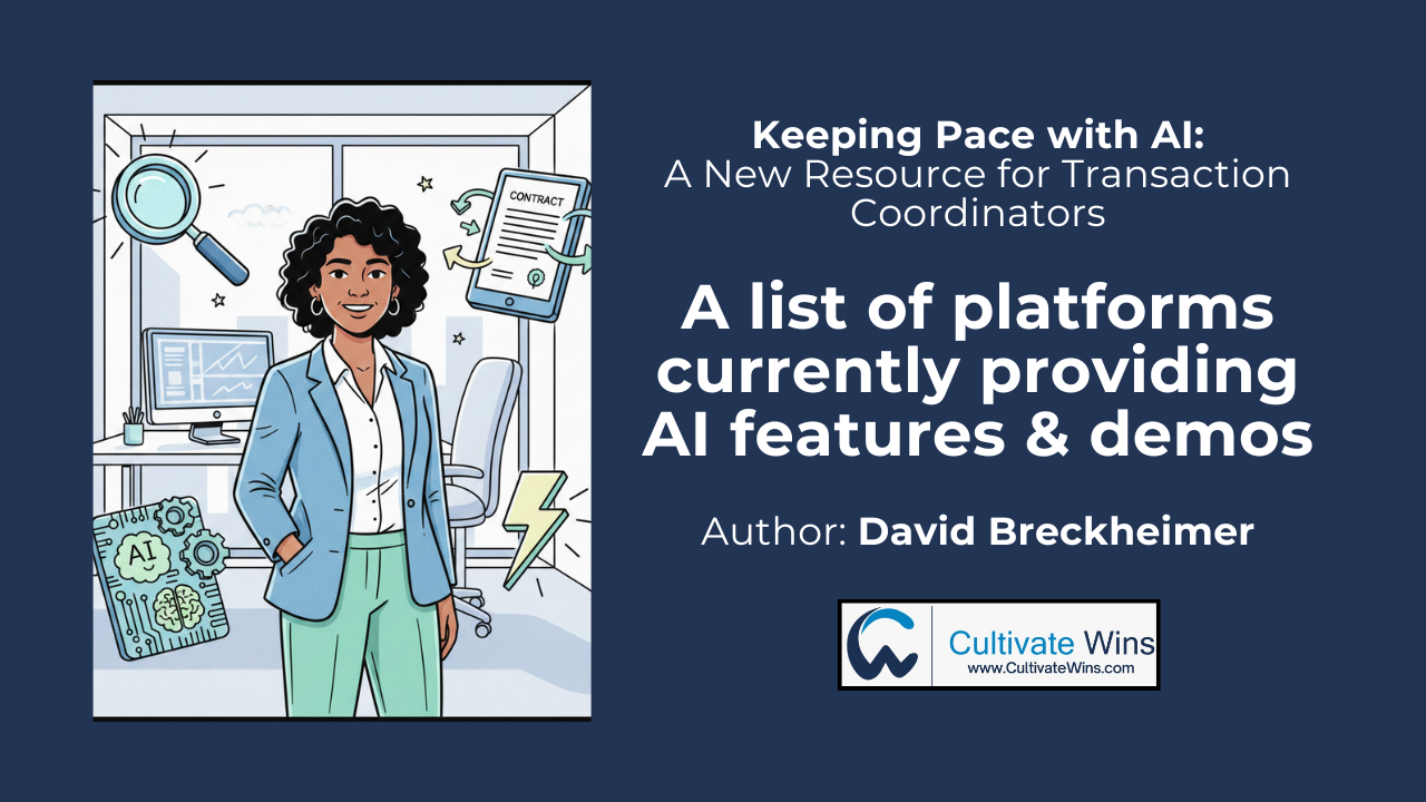 The role of a Transaction Coordinator is built on precision and timing. As artificial intelligence begins to move into the real estate space, staying informed about how these tools actually work is becoming a full-time job in itself. This blog was created to solve that problem.